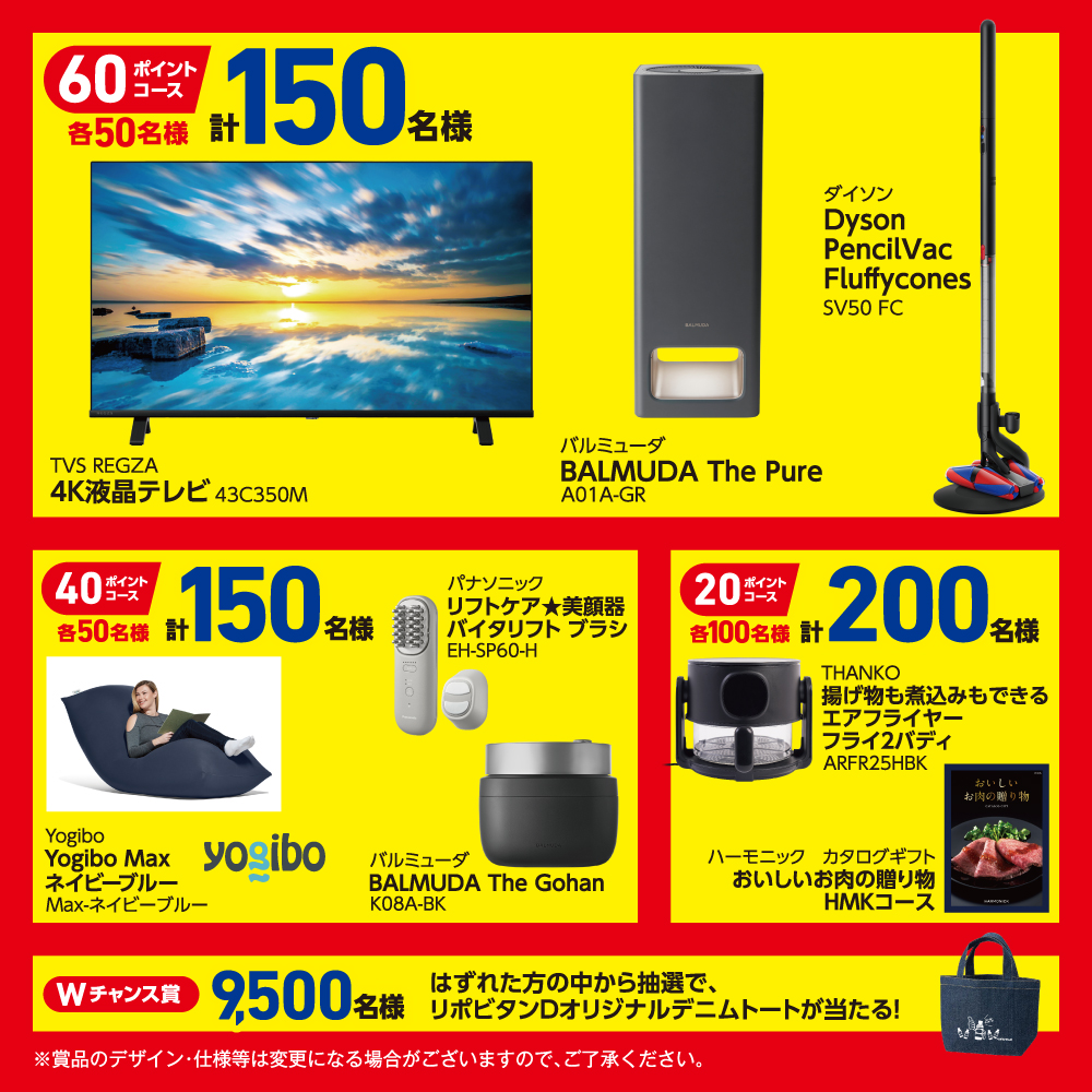 「ファイト イッパーツ! 応援キャンペーン2025冬」は、リポビタンDおよびリポビタンブランド製品をご愛顧にいただいている皆さまに感謝の気持ちを込めて実施する年末年始恒例のキャンペーンです。対象製品についている応募シールを集めてご応募いただくと、ポイント数に応じて、抽選で43V型4K液晶テレビや空気清浄機のBALMUDA The Pure(いずれも60ポイントコース)などの素敵な賞品が合計10,000名様※1に当たります。