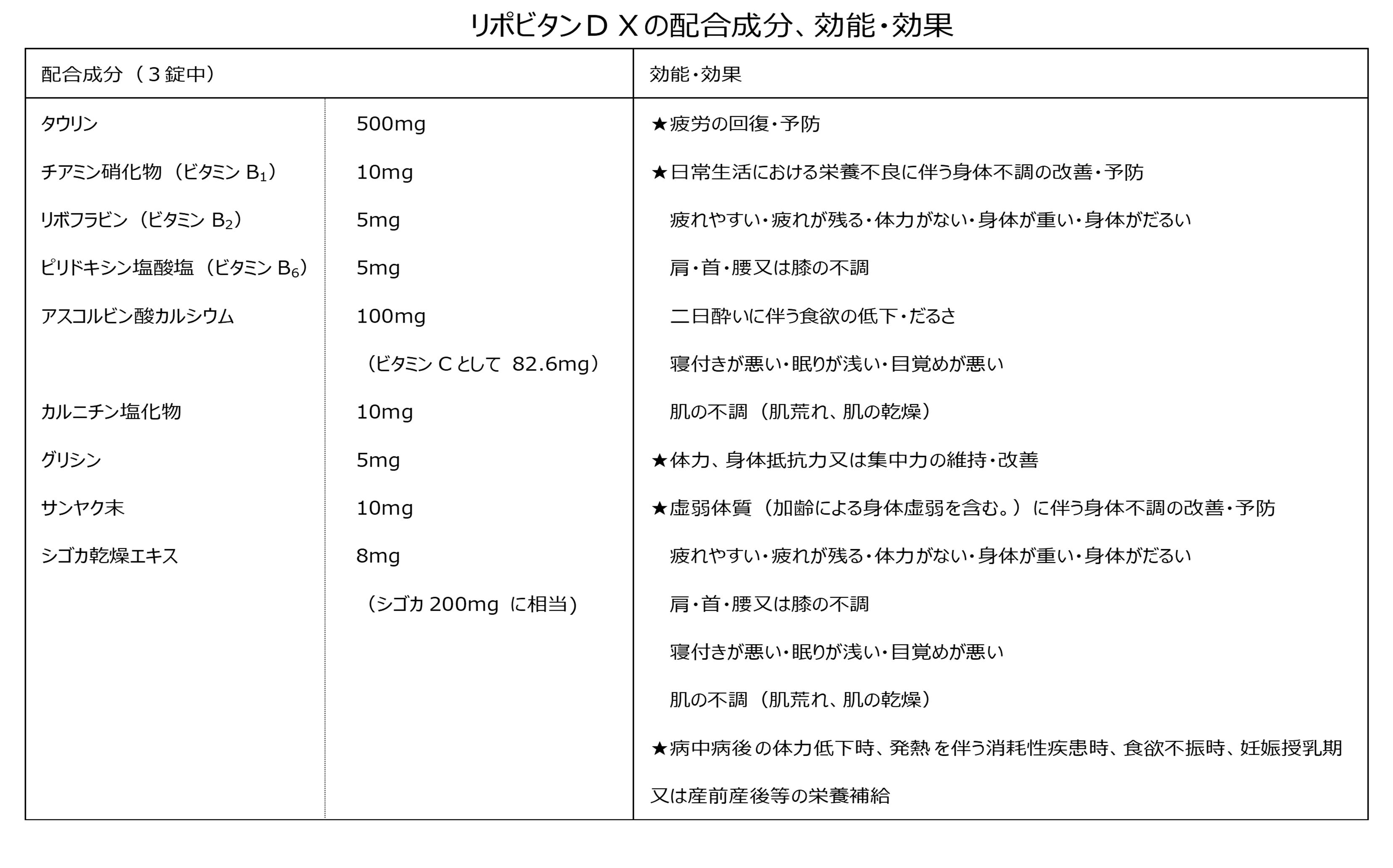 【リポビタンDX】は、疲労と栄養の偏りによる睡眠の悩みに同時にアプローチする指定医薬部外品です。有効成分をぎゅっと詰め込み、極薄フィルムコーティングにより飲みやすい錠剤ができました。我々の自信作をぜひお試しください。